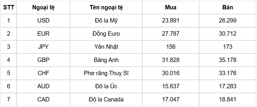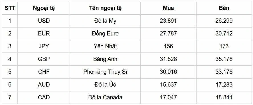 Tỷ giá các ngoại tệ mạnh khác trong giỏ thanh toán quốc tế, tại Ngân hàng Vietcombank được niêm yết như sau: