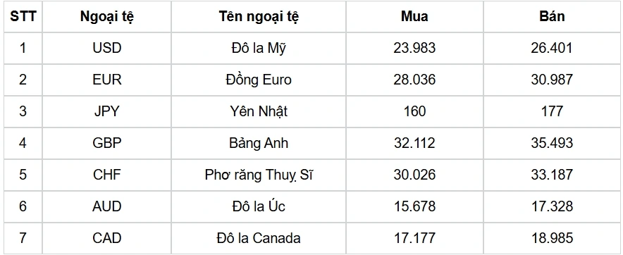 Tỷ giá các ngoại tệ mạnh khác trong giỏ thanh toán quốc tế, tại Ngân hàng Vietcombank được niêm yết như sau: