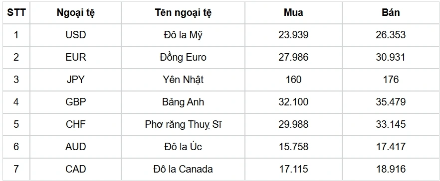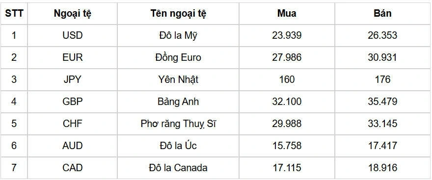 Tỷ giá các ngoại tệ mạnh khác trong giỏ thanh toán quốc tế, tại Ngân hàng Vietcombank được niêm yết như sau: