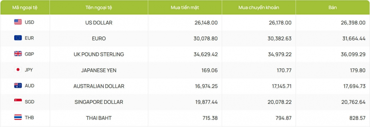 Cụ thể, ngân hàng Vietcombank công bố giao dịch ở mốc 26.148 - 26.389 đồng/USD (mua vào và bán ra), thấp hơn phiên trước 5 đồng cả hai chiều.