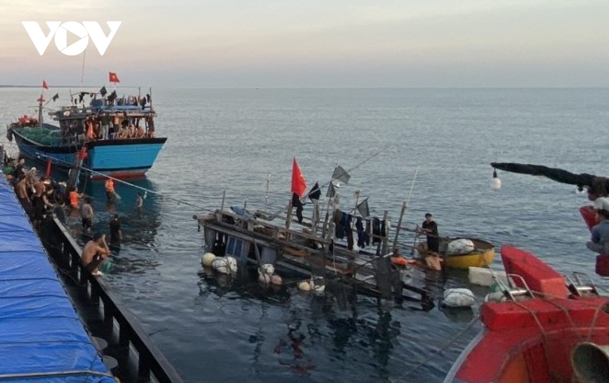 VOV.VN - Đang vào bờ thì tàu cá TTH.92189 ở xã Vinh Thanh, huyện Phú Vang, tỉnh Thừa Thiên Huế đâm vào tàu hàng. Tàu cá bị chìm, 11 thuyền viên trên tàu này được cứu kịp thời.