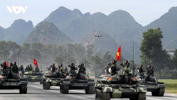 VOVVN - VOV.VN - Various military vehicles, artillery systems, and specialized weapons were deployed during the second rehearsal held on the morning of August 5 at the National Military Training Centre 4 on the outskirts of Hanoi,...