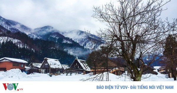 VOVVN - VOV.VN - Mùa đông, làng Shirakawa-go trở thành xứ tuyết với những ngôi nhà cổ xưa, đẹp như trong truyện cổ tích.
