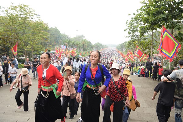 VOVVN - VOV.VN - Sáng 6/4 (tức mùng 9/3 âm lịch), từ khắp mọi miền Tổ quốc, hàng vạn du khách đã nô nức đổ về Khu di tích lịch sử Đền Hùng (Phú Thọ) để dâng...