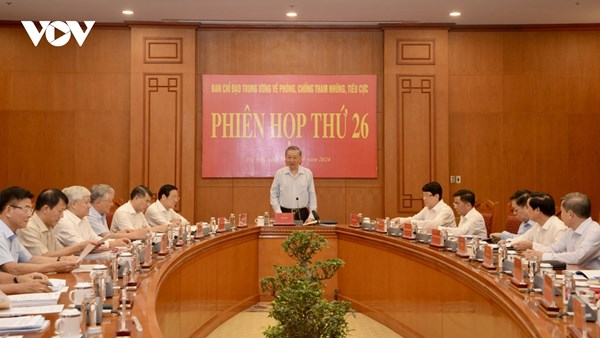 VOVVN - VOV.VN - Party General Secretary and State President To Lam chaired the 26th meeting of the Central Steering Committee on Prevention and Control of Corruption and Negative Phenomena on August 14 in Hanoi.