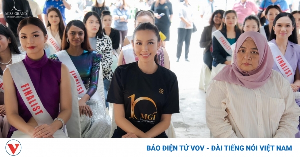 VOVVN - VOV.VN - Diện trang phục giản dị nhưng Hoa hậu Thùy Tiên vẫn nổi bật khi xuất hiện cùng dàn thí sinh Miss Grand Malaysia.