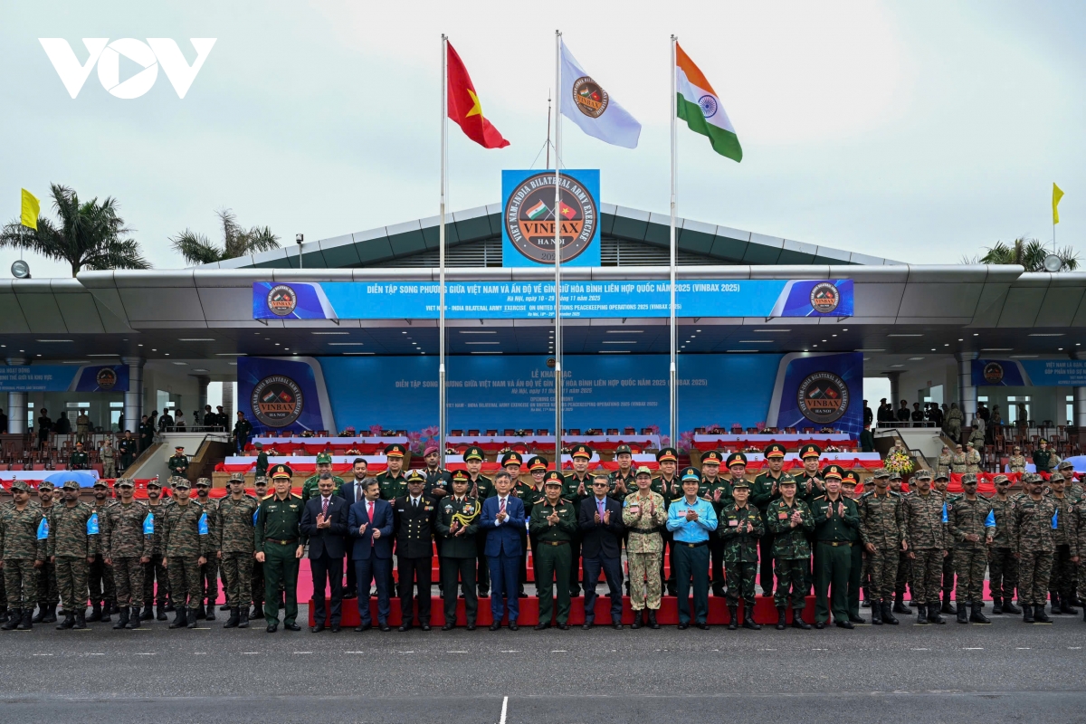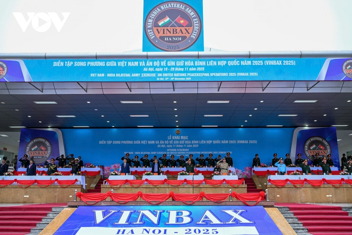VOV.VN - Sáng 11/11, tại Trung tâm Huấn luyện Quân sự quốc gia 4 Hà Nội, diễn ra Lễ khai mạc Diễn tập song phương giữa Việt Nam và Ấn Độ về gìn giữ hòa bình Liên Hợp Quốc năm 2025 (VINBAX 2025) do Bộ Quốc phòng Việt Nam phối hợp với Bộ Quốc phòng Ấn Độ tổ chức.