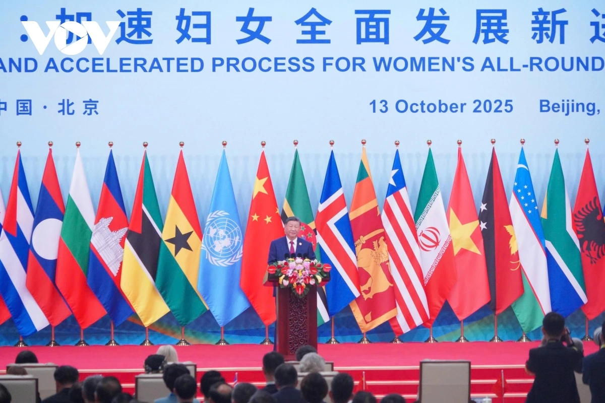 VOV.VN - Nhân dịp kỷ niệm 30 năm ra đời Tuyên bố và Cương lĩnh hành động Bắc Kinh về bình đẳng giới năm 1995, Hội nghị các nhà lãnh đạo toàn cầu về phụ nữ đã được tổ chức từ ngày 13-14/10/2025 tại Bắc Kinh, Trung Quốc với chủ đề "Một tương lai chung: Tiến trình mới và nhanh hơn cho sự phát triển toàn diện của phụ nữ".
