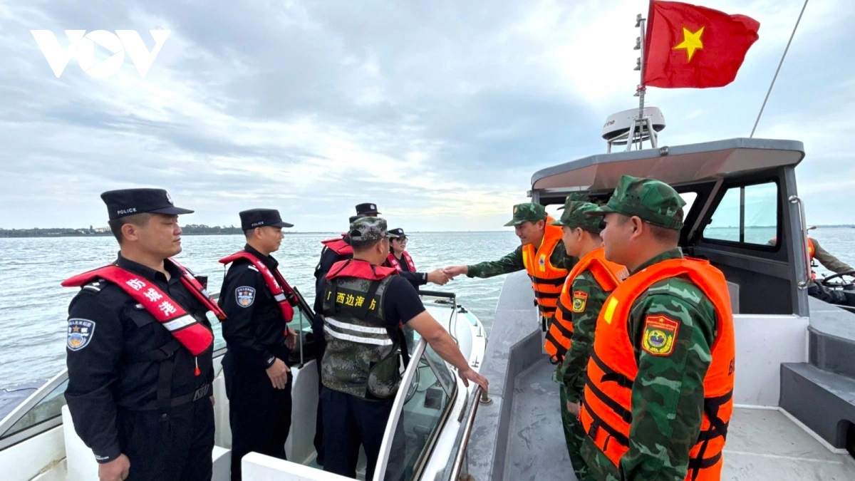 VOV.VN - Sáng 28/10, Đồn Biên phòng Hải Hòa, Bộ đội Biên phòng tỉnh Quảng Ninh (Việt Nam) phối hợp Chi đội quản lý biên giới Phòng Thành Cảng (tỉnh Quảng Tây, Trung Quốc) tổ chức các hoạt động thực thi pháp luật, tuần tra song phương trên sông Bắc Luân.