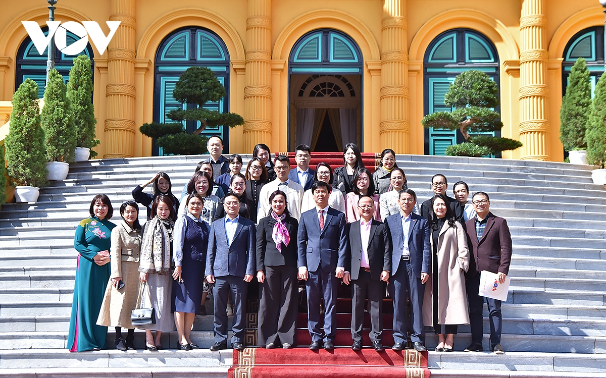 Các đại biểu chụp ảnh lưu niệm tại Phủ Chủ tịch.