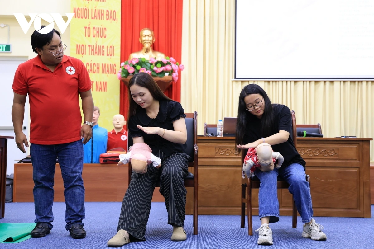 Thực hành sơ cứu hóc dị vật đường thở ở trẻ nhỏ dưới 1 tuổi (Ảnh Tỷ Huỳnh)