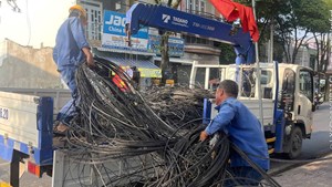 Đồng Tháp khẩn trương thu gom dây cáp cũ bỏ trên lề đường sau khi VOV thông tin