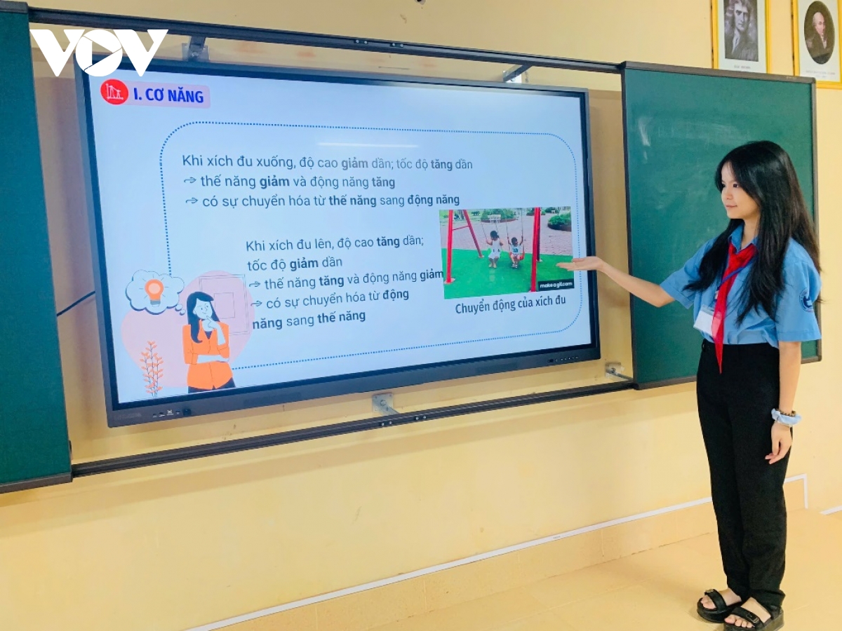 Tiết học Vật Lý của lớp 9/1, Trường THCS Trần Hưng Đạo, xã A Lưới 3, thành phố Huế do cô giáo Trần Thị Thùy Dương giảng dạy diễn ra đầy hào hứng với sự tương tác sôi nổi giữa cô và trò. Với màn hình, máy chiếu và giáo án điện tử được chuẩn bị công phu, cô Thùy Dương đã giúp học sinh hiểu bài nhanh, tiếp thu được nhiều kiến thức so với kiểu dạy học truyền thống trước đây.