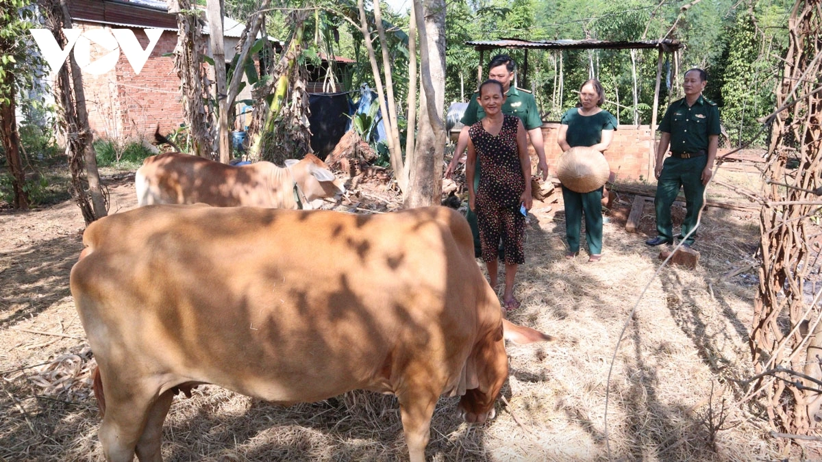 Chị Nguyễn Thị Hồng Khánh (xã Đắc Ơ, huyện Bù Gia Mập cũ) không giấu được niềm vui khi được hỗ trợ sinh kế: “Bộ đội Biên phòng Đắc Ơ đã hỗ trợ gia đình tôi một con bò giống để phát triển kinh tế. Sau một năm, con bò đã sinh sản. Gia đình cũng rất vui, rất mừng vì đã bớt khó khăn, phát triển kinh tế dù không có đất canh tác, phải chăn nuôi”.