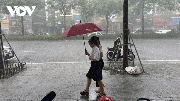 VOVVN - VOV.VN - Ngày 18/4, khu vực Hà Nội và nhiều nơi ở Bắc Bộ duy trì trạng thái nhiều mây, có mưa rào và dông, cục bộ xuất hiện lốc, sét, mưa đá và gió...