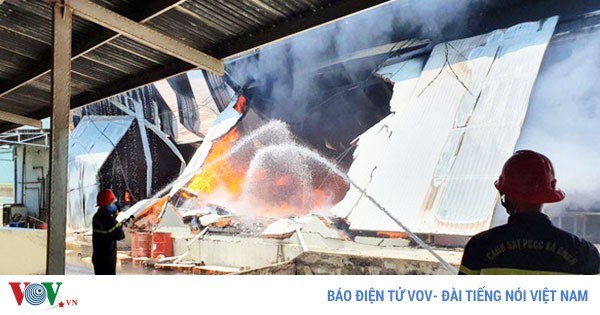 VOVVN - VOV.VN - Đám cháy bùng phát tại nhà kho chứa khuôn nệm mút, sau đó lan nhanh với diện tích khoảng 2.000 mét vuông.