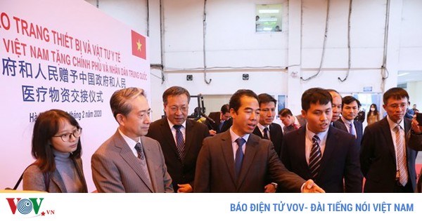 VOVVN - Số vật tư, trang thiết bị y tế gồm máy thở, quần áo sát khuẩn, găng tay và khẩu trang y tế với tổng trị giá 500.000 USD, là quà của Việt Nam tặng Trung...