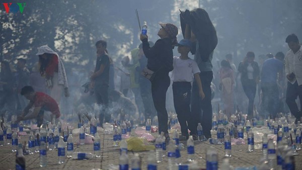 VOVVN - VOV.VN - Đi lễ chùa ngày mùng 1 Tết, không ít người thiếu ý thức đã vứt đầy chai lọ, chân nhang, rác… ở Tượng đài Quán thế âm ở Thừa Thiên-Huế.