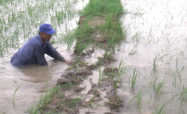 VOVVN - VOV.VN - Những ngày qua, trên địa bản tỉnh Cà Mau xuất hiện mưa lớn kéo dài. Tại vùng trồng lúa huyện Trần Văn Thời, mực nước nội đồng dâng cao, lúa bị ngập úng sâu khiến...