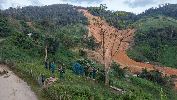 VOVVN - VOV.VN - Sáng 15/11, khu vực sạt lở tại xã Hùng Sơn, TP Đà Nẵng tiếp tục dịch chuyển mạnh, lực lượng chức năng vẫn chưa thể tiếp cận hiện trường để tìm ba người...