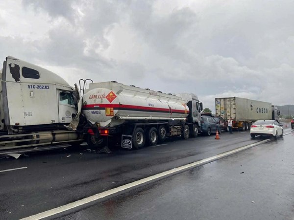 VOVVN - VOV.VN - Chiều 21/5, nhiều phương tiện đã va chạm giao thông liên hoàn trên cao tốc Phan Thiết - Dầu Giây. Rất may, vụ tai nạn không gây thiệt hại về người.