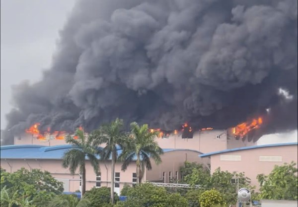 VOVVN - VOV.VN - Nhà xưởng 4 tầng sản xuất giày da ở Vĩnh Phúc bốc cháy ngùn ngụt vào sáng sớm, thiêu rụi nhiều tài sản.