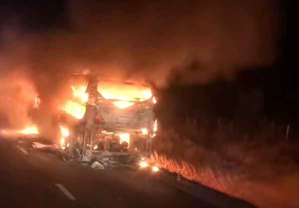 VOVVN - VOV.VN - Xe khách giường nằm đang lưu thông trên cao tốc Vĩnh Hảo - Phan Thiết đoạn qua huyện Bắc Bình, tỉnh Bình Thuận thì bốc cháy, hành khách thoát thân, còn xe bị...