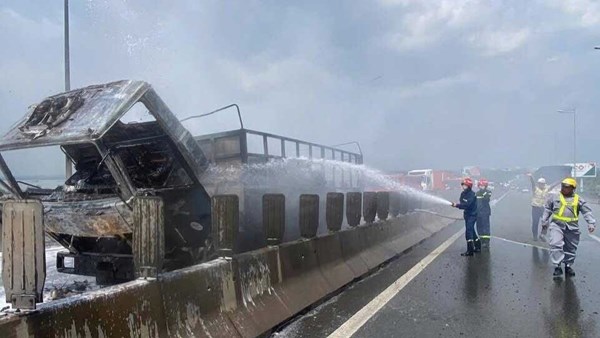 VOVVN - VOV.VN - Xe tải bất ngờ bốc cháy dữ dội trên cao tốc TP.HCM - Long Thành - Dầu Giây khiến các phương tiện từ Đồng Nai đi TP.HCM kẹt xe kéo dài.