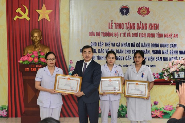 VOVVN - VOV.VN - Tại lễ khen thưởng sáng 28/10, Bộ Y tế và UBND tỉnh Nghệ An đã biểu dương các y bác sĩ, điều dưỡng đã không quản hiểm nguy, bảo vệ an toàn cho...