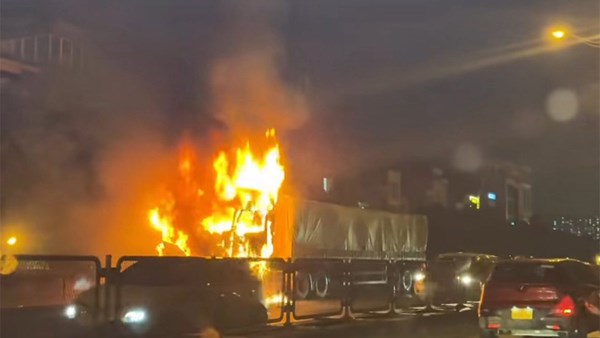 VOVVN - VOV.VN - Giữa trời mưa, xe đầu kéo đang chạy trên đường vành đai 3 Hà Nội bất ngờ bốc cháy ngùn ngụt khiến nhiều người đi đường hoảng hốt. Tài xế nhanh trí dừng...