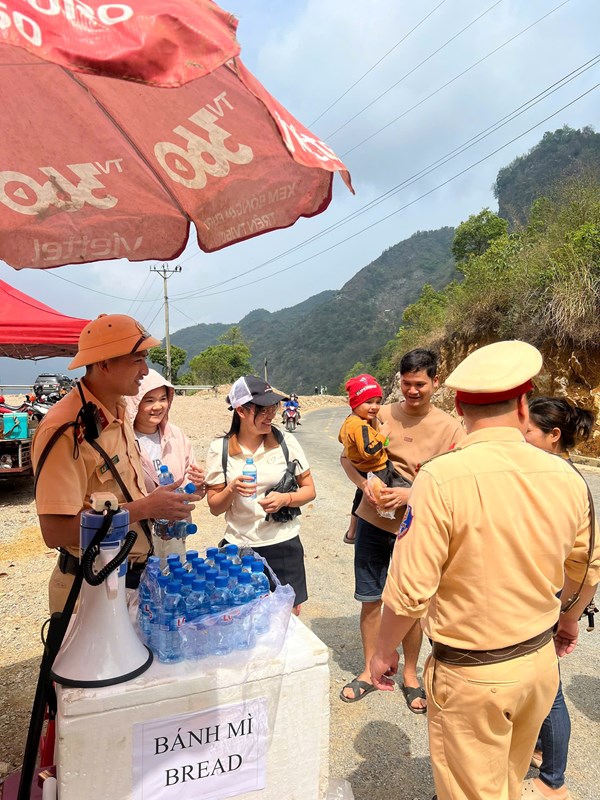 VOVVN - VOV.VN - Lực lượng CSGT Công an tỉnh Cao Bằng đã tổ chức các điểm phát đồ ăn, nước uống miễn phí cho người dân, du khách trong dịp nghỉ lễ.