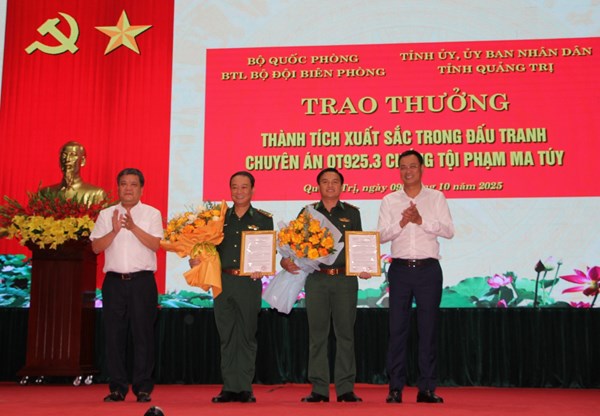 VOVVN - VOV.VN - Sáng nay (9/10), tại Ban Chỉ huy Bộ đội Biên phòng tỉnh Quảng Trị, Bộ Tư lệnh Bộ đội Biên phòng tổ chức trao thưởng ban chuyên án đấu tranh, bắt giữ các...