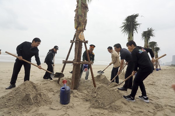 VOVVN - VOV.VN - Thêm 700 cây dừa vừa được trồng mới dọc bãi biển du lịch quận Sơn Trà, thành phố Đà Nẵng do Sở Du lịch thành phố Đà Nẵng tổ chức trồng sáng nay...