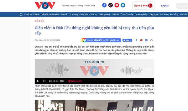VOVVN - VOV.VN - Sở Thông tin và Truyền thông tỉnh Đắk Lắk vừa có công văn đề nghị Sở Giáo dục và Đào tạo tỉnh trả lời thông tin đăng trên Báo Điện tử VOV và...