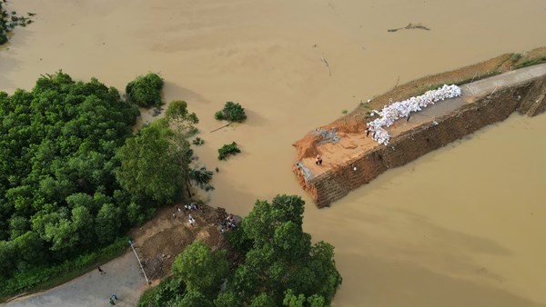 VOVVN - VOV.VN - Tối 10/9, một đoạn đê sông Lô qua xã Quyết Thắng, huyện Sơn Dương (Tuyên Quang) dài khoảng hơn 10m đã bị vỡ. Nước lũ lên cao và chảy rất mạnh nên việc...