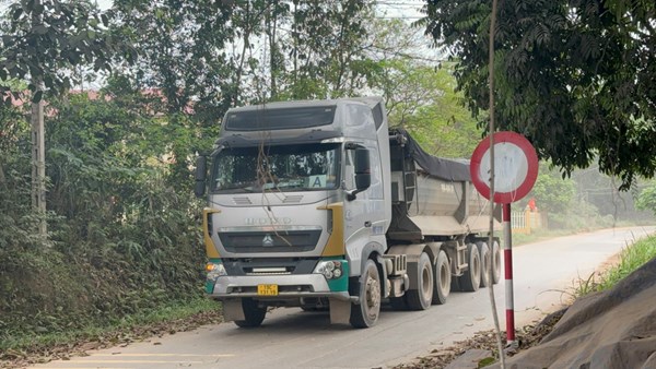 VOVVN - VOV.VN - Thời gian gần đây, trên nhiều tuyến đường liên xã của huyện Tam Nông, tỉnh Phú Thọ, hàng đoàn xe tải nặng, xe HOWO, xe đầu kéo chở đất, đá có dấu hiệu...