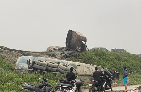 VOVVN - VOV.VN - Một xe bồn húc văng xe đầu kéo đang gặp sự cố và đỗ ở làn dừng khẩn cấp trên cao tốc Pháp Vân - Cầu Giẽ khiến phương tiện hư hại nghiêm trọng.