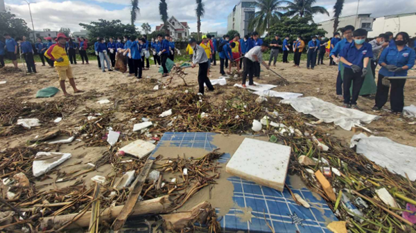 VOVVN - VOV.VN - Sáng nay (21/10), Thành Đoàn Đà Nẵng phối hợp Công ty Môi trường Đô thị thành phố ra quân vệ sinh môi trường dọc bãi biển Nguyễn Tất Thành.