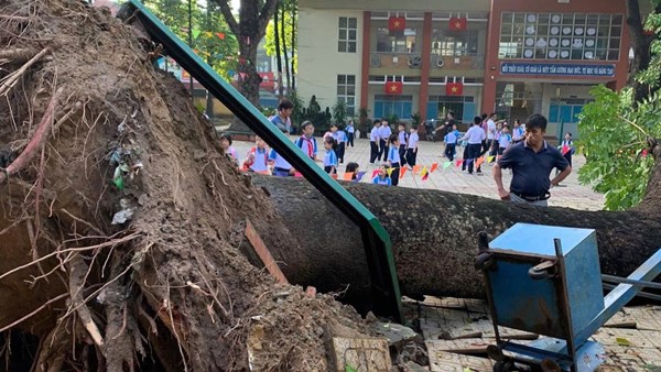 VOVVN - VOV.VN - Ngày 2/10, cơ quan chức năng tỉnh Đồng Nai xử lý hiện trường vụ một cây cổ thụ đổ bật gốc trong sân trường tiểu học. May mắn vụ việc diễn ra ngoài...