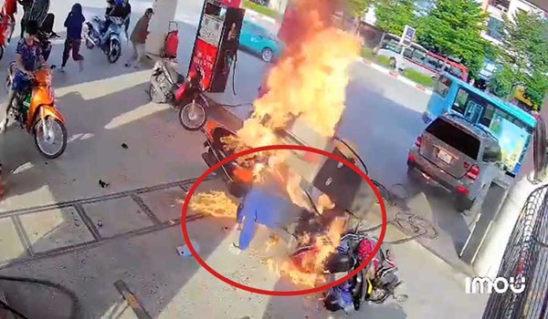 VOVVN - VOV.VN - Chiều 20/9, một ô tô Mercedes mang biển số TP Hà Nội trong lúc vào đổ xăng bất ngờ rồ ga húc đổ trụ bơm, gây cháy dữ dội tại cây xăng Mai...
