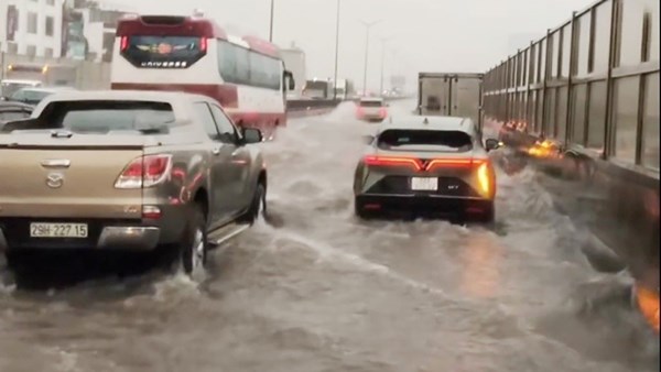 VOVVN - VOV.VN - Do ảnh hưởng của mưa lớn kéo dài, đến trưa 7/10, nhiều tuyến đường ở Hà Nội vẫn bị ngập sâu, trong đó có đoạn QL70 từ cầu Ngà hướng lên cầu vượt...