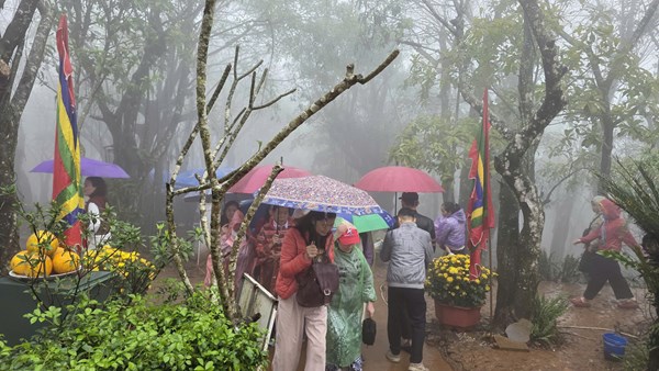 VOVVN - VOV.VN - Dù mưa lớn, đường dốc trơn trượt, từ mờ sáng mùng 9 tháng Giêng, hàng nghìn du khách vẫn hành hương về Am Tiên, xã Tân Ninh, Thanh Hóa dự lễ “mở cổng...