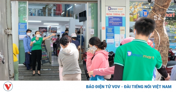 VOVVN - VOV.VN - Lượng người đến mua cùng lúc khá đông nên quản lý và bảo vệ siêu thị phải thường xuyên nhắc nhở mọi người giữ khoảng cách.