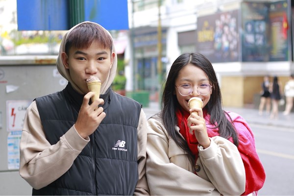 VOVVN - VOV.VN - Gió mùa đông bắc khiến Hà Nội chuyển lạnh, nhiều người thích thú ăn kem, thưởng thức cốm, chụp ảnh, chơi cờ giữa cái se lạnh đầu mùa, tận hưởng những cơn gió...