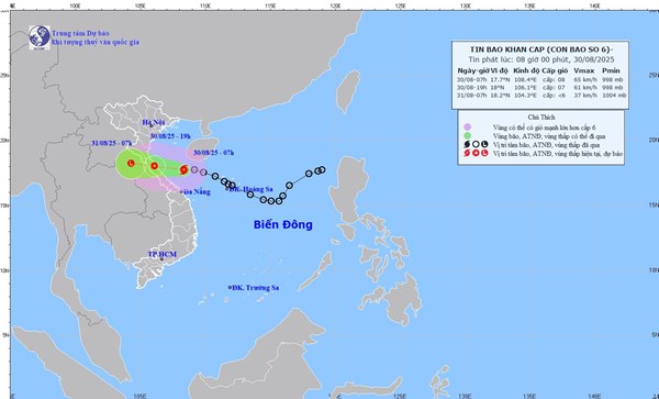 VOVVN - VOV.VN - Theo Trung tâm Dự báo Khí tượng Thủy văn quốc gia, sáng nay (30/8) áp thấp nhiệt đới trên vùng biển phía Tây Bắc khu vực Bắc Biển Đông đã mạnh lên thành...
