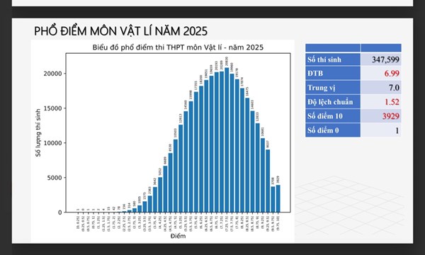 VOVVN - VOV.VN - Chiều nay (15/7), Bộ GD-ĐT công bố phổ điểm kỳ thi tốt nghiệp THPT 2025. Năm nay, môn Vật Lý ghi nhận phổ điểm đẹp, cân đối.