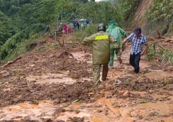 VOVVN - VOV.VN - Tại Km 36+230, Quốc lộ 4G, địa phận xã Phiêng Pằn, tỉnh Sơn La, mưa lớn đã khiến bùn, đất đá từ trên đồi sạt trượt xuống che lấp mặt đường, gây ách...