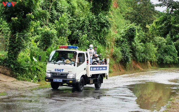 VOVVN - VOV.VN -Nhiều lái xe cho biết nước ngập một đoạn dài gần 1km, sâu từ 50 đến 1m, khiến cả xe tải, xe khách cũng không qua được