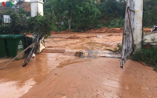 VOVVN - VOV.VN -Lực lượng chức năng tại tỉnh Bình Thuận đang khẩn trương khắc phục sự cố sạt lở từ một dự án bất động sản đang thi công tràn xuống đường.