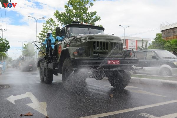 VOVVN - VOV.VN - Chiều nay (3/8), Bộ Quốc phòng tiến hành phun hóa chất khử khuẩn phòng dịch Covid-19 toàn bộ quận Sơn Trà, thành phố Đà Nẵng.